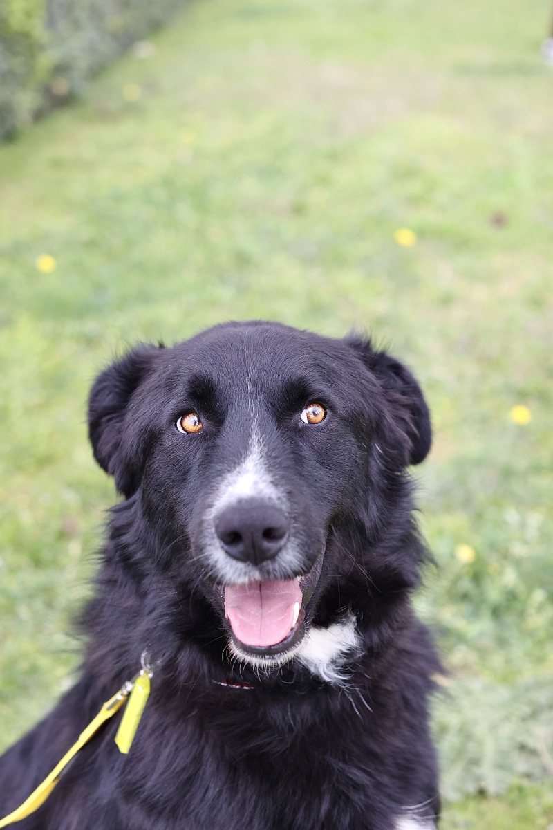 He gets along wonderfully with other dogs and children. Always cheerful, positive, and full of good energy.
