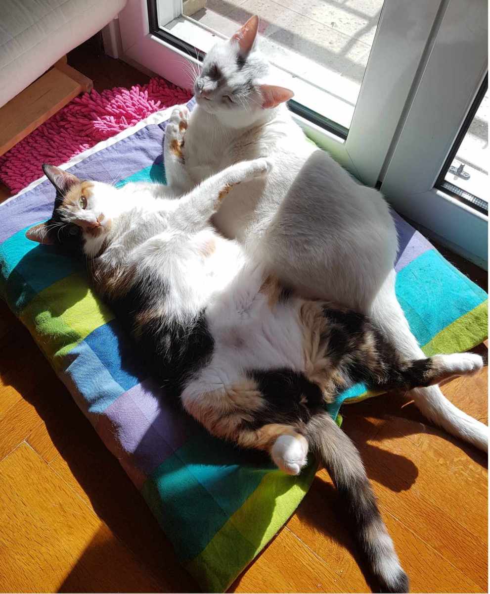 Stelios was a cat with no fears, as he came to me after a loving and caring family, so he didn’t know pain and fear. After a year together, I started to feel bad that he was all day by himself, while I was at work, so I decided to bring him company! So, that’s how Sugar entered our life. Now, our home was the paradise of sweetness. Unfortunately, our little Sugar wasn’t as lucky as Stelios during her first years in life. She didn’t live with a family before, so it was her first time having one, and my first time having to take care of two furry babies. It was like the Bermuda triangle in our home! Sugar was a scared cute girl. If she could speak, her moto would be “yes i want, but I am also scared, but I’ll do it anyway”. And every day, she dares a little more, she never gives up! I have never seen in my life, a creature to claim with such persistence what she wants, even if she has to sit on my keyword, while I’m working. If I tell her 10 times to go, she will come 11 times. When Sugar felt familiar with the home and the tenants, she decided that she is the queen and we are the servants that let us live with her. She gives away her purring, that sounds like a helicopter, fully satisfied, and when she comes to earn her cuddles, her saliva falling is like tears of joy.