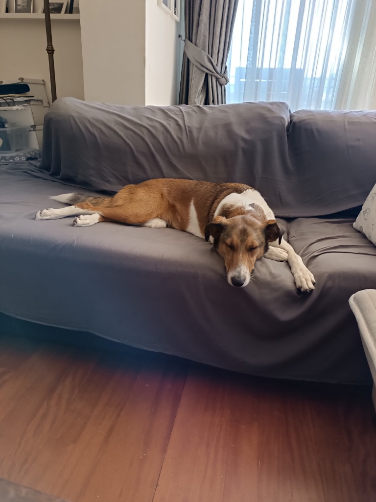 Τον πήραμε σπίτι κάπου στα μέσα του Οκτώβρη του ’20. Έκανε μέρες να φάει, να πάει τουαλέτα και να σταματήσει να κρύβεται όταν πιάναμε το λουρί για να πάμε βόλτα. Εμείς κάναμε υπομονή του δώσαμε όσο χρόνο ήθελε. Συνηθίζω να λέω ότι στα φοβικά ζώα δίνεις χρόνο όπως ρίχνεις κέρματα στην fontana di trevi πότε δεν ξέρεις πόσο θα χρειαστεί και αν θα πραγματοποιηθεί ποτέ η ευχή σου.